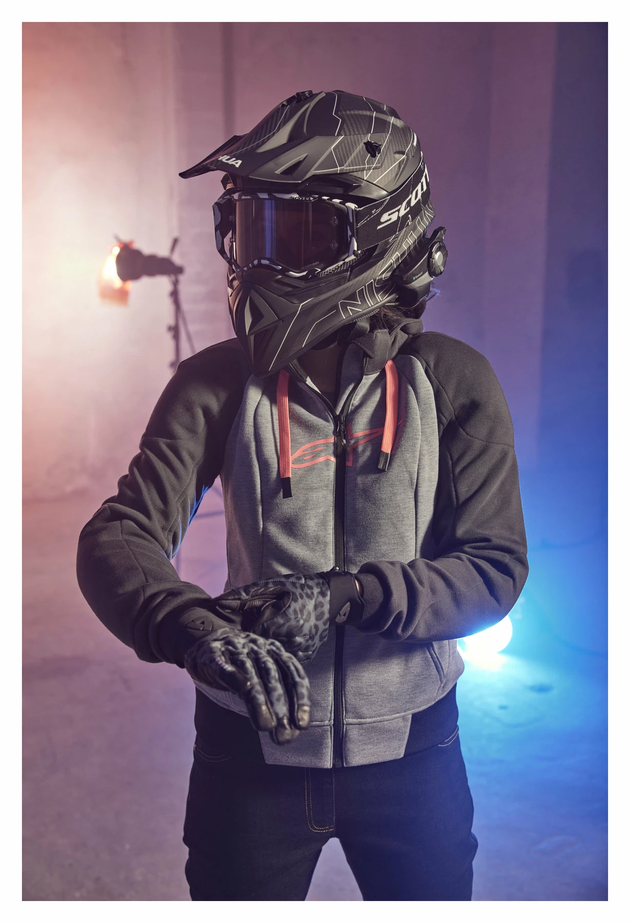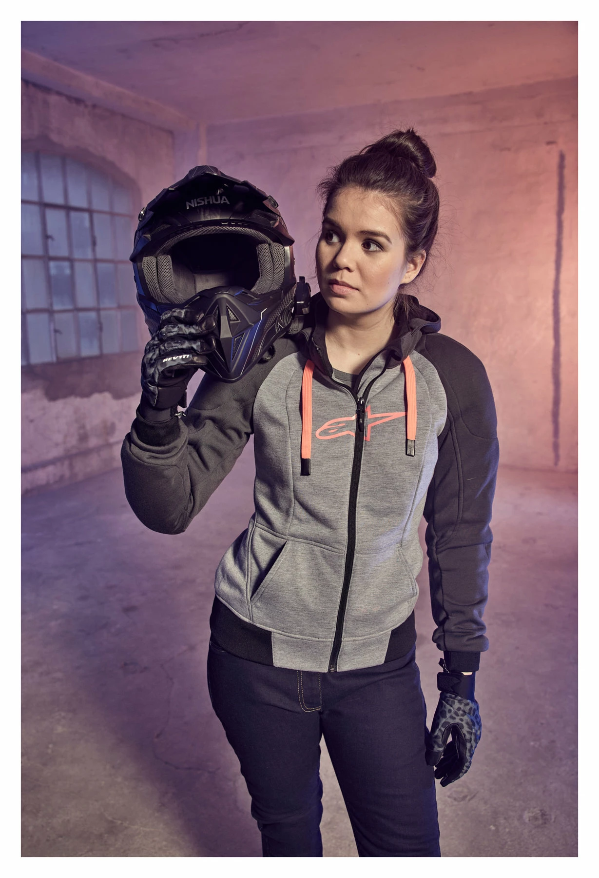 Calling all hoodie fans: The *Chrome Sport* Hoodie from Alpinestars is a “motorcycle jacket” that doesn’t actually look like one! Of course, the biker hoodie is only for sunny days because the cotton outer shell lets everything through. It’s fully breathable, absolutely wind-permeable, and not at all waterproof. But in safety terms, this hoodie jacket still gives a very good level of protection – just as you would expect from Alpinestars.