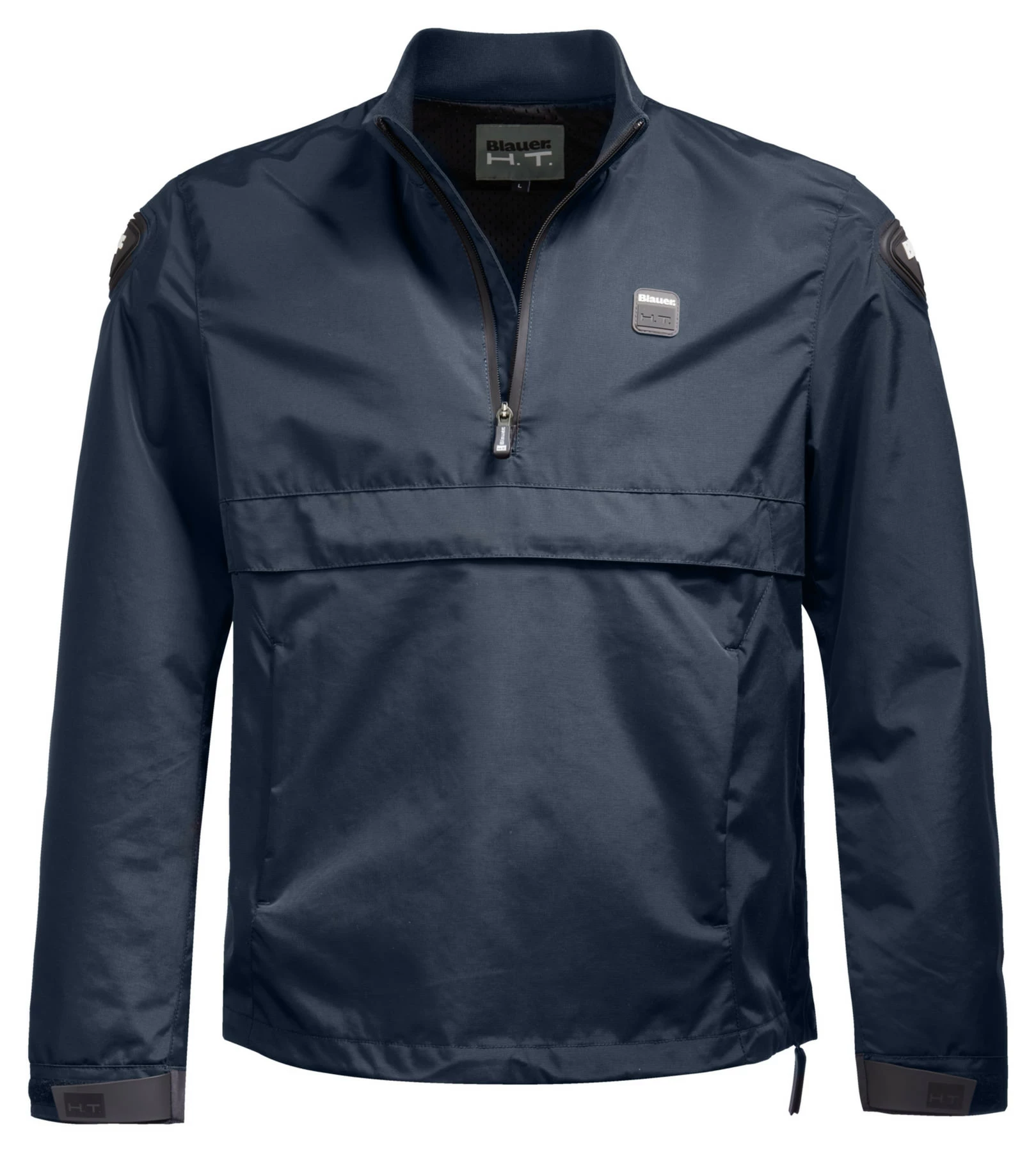 Cut like a zip sweater, but much more like a motorcycle jacket. This is the blue *Spring Pull Man* textile jacket. Made of 100 % nylon, breathable and rain repellent. High quality workmanship, with a central pocket (also air inlet) and two concealed front pockets. The *Spring Pull Man* is available in different colours. Choose your favourite for casual cruising through the city!