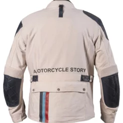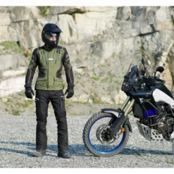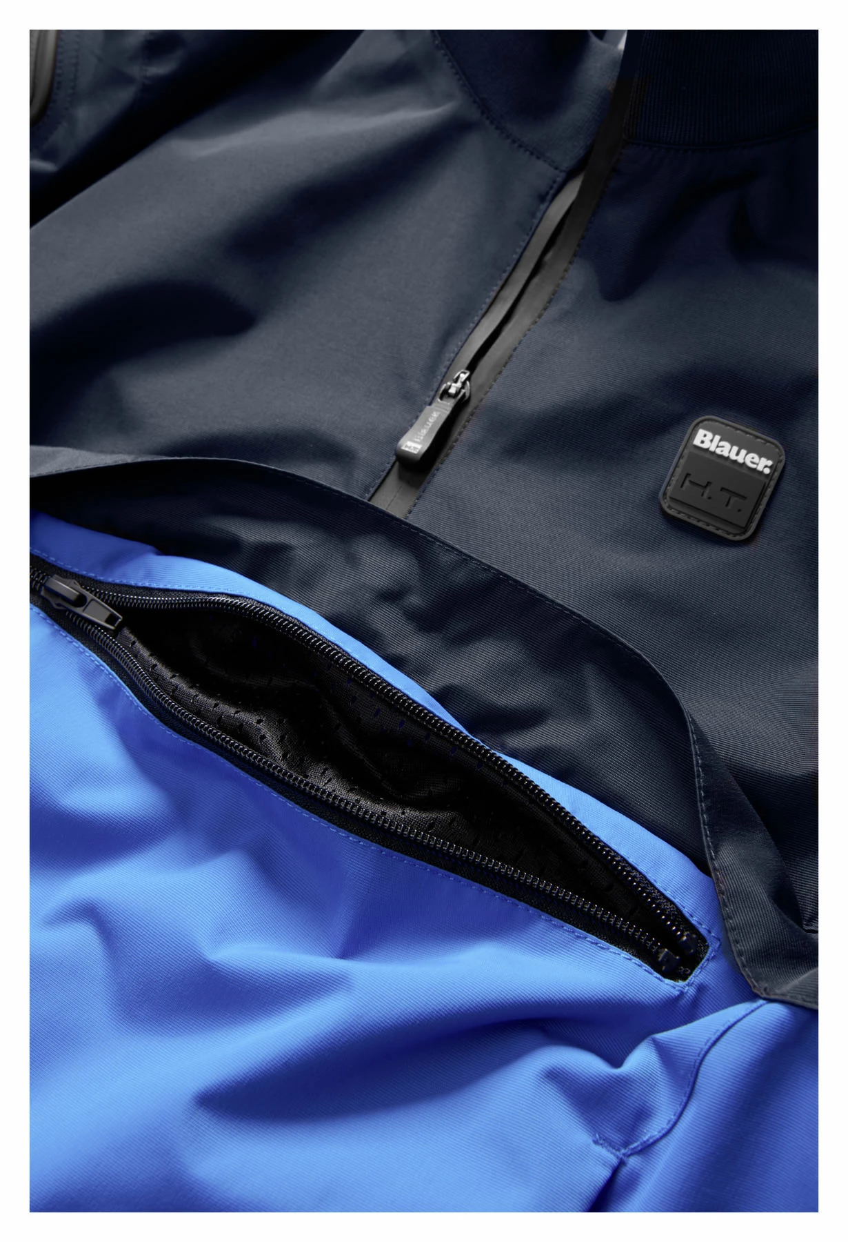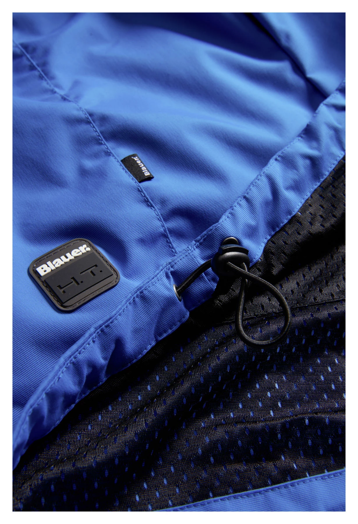 Cut like a zip sweater, but much more like a motorcycle jacket. This is the blue *Spring Pull Man* textile jacket. Made of 100 % nylon, breathable and rain repellent. High quality workmanship, with a central pocket (also air inlet) and two concealed front pockets. The *Spring Pull Man* is available in different colours. Choose your favourite for casual cruising through the city!