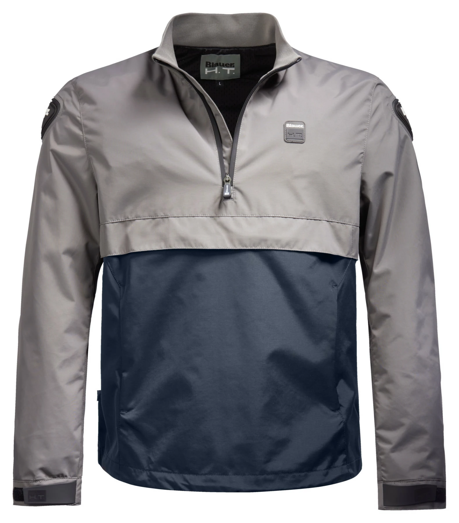 Cut like a zip sweater, but much more like a motorcycle jacket. This is the blue *Spring Pull Man* textile jacket. Made of 100 % nylon, breathable and rain repellent. High quality workmanship, with a central pocket (also air inlet) and two concealed front pockets. The *Spring Pull Man* is available in different colours. Choose your favourite for casual cruising through the city!