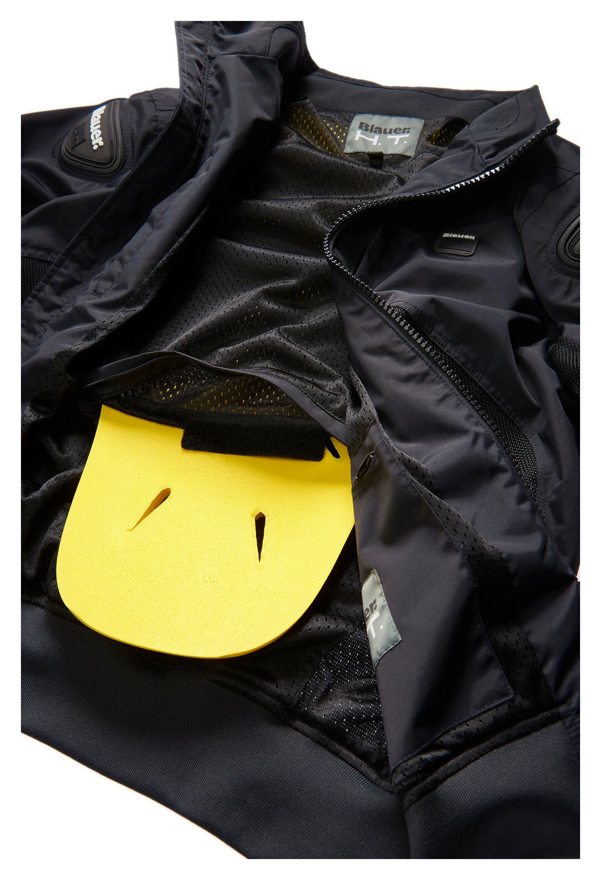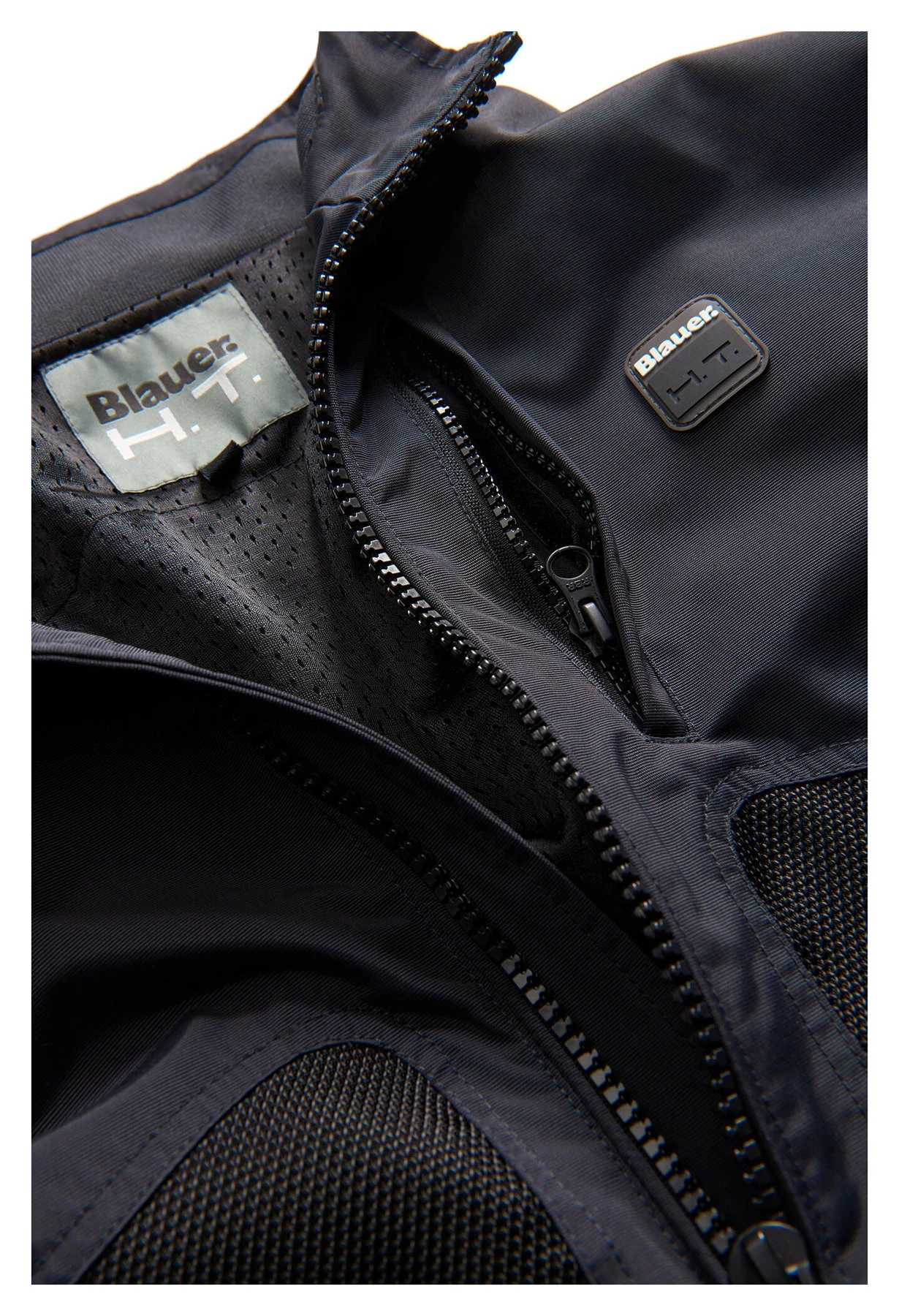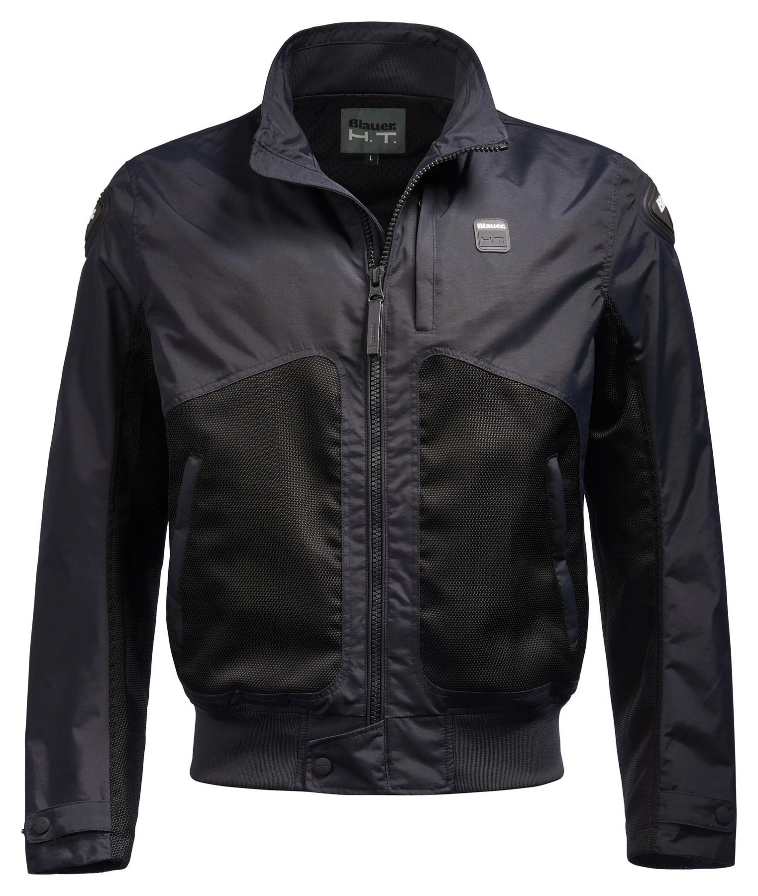 Blauer in blouson style. The *Thor Air* is an airy summer motorcycle jacket made of double-layer nylon fabric with large mesh inserts at the front and under the arms. The wider cut and the knitted cuff provide a lot of comfort. The 10,000 water column ensures that a light summer rain will not harm you. In the colours blue, grey or olive, the blue one always goes.