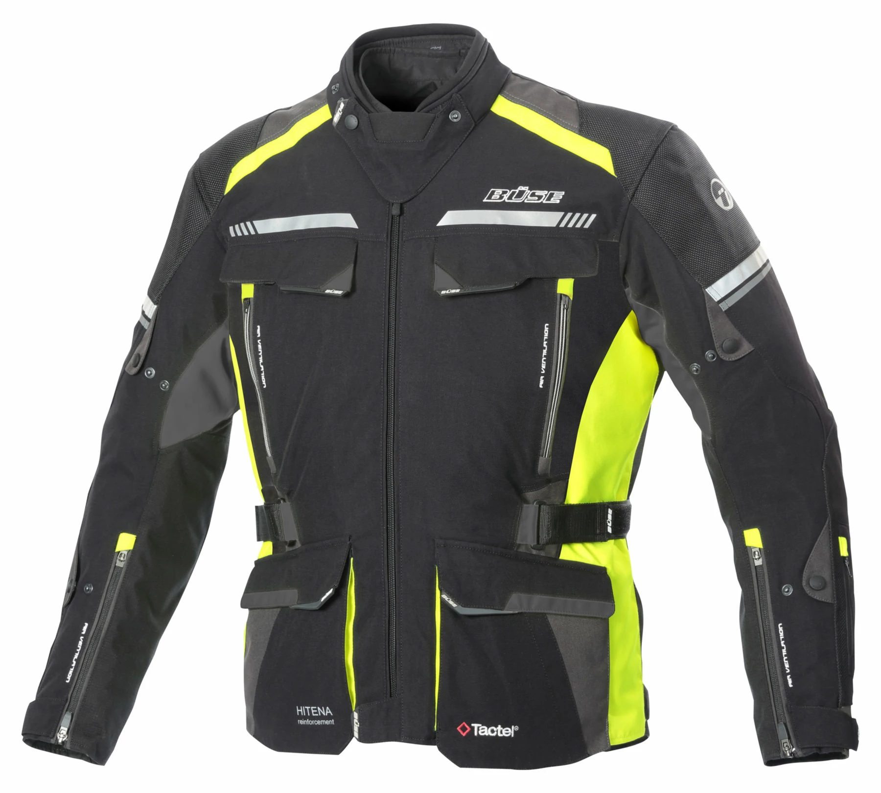 “Highland” is evocative of heroic figures, the Scottish Highlands, wind, weather and, of course, adventure. So it’s exactly the right name for the Büse Highland range. Take the Büse *Highland II*, for example. It’s the slightly re-engineered successor to the Büse *Highland* jacket. Now featuring a climate membrane jacket with thermal liner at the front, ripstop fabric and minor design modifications. Combined with the trousers 211287, the *Highland II* is a fantastic choice for touring, with its numerous pockets. Perfect for touring bikers.