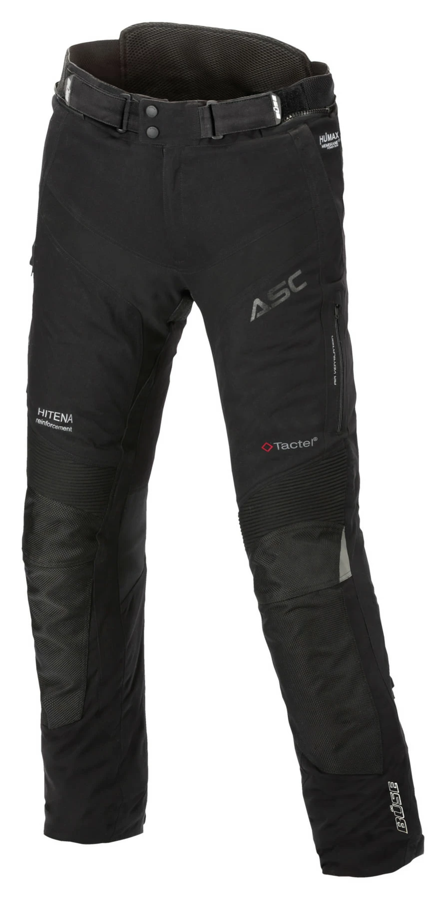 Büse *Rocca* textile trousers are particularly striking with their sporty slim fit. What’s more, the HUMAX climate membrane means they can handle any weather. Perfect for combining with the BÜSE ROCCA textile jacket. In terms of style, fabric, cut, design and features,, the *Rocca* is a great match. Of course, you can also wear these motorcycle trousers with many other motorbike jackets