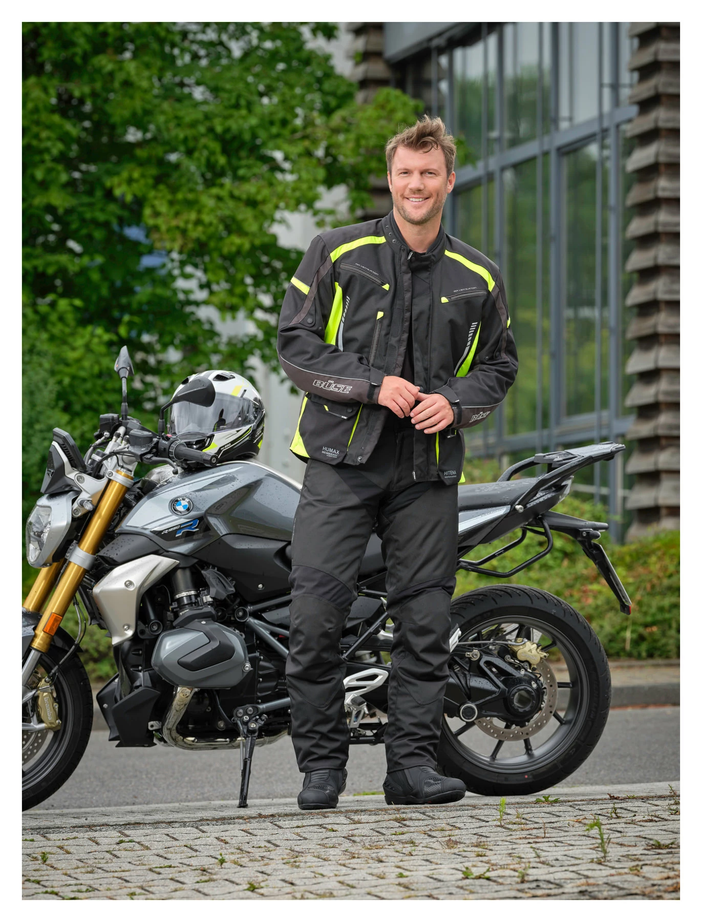 With the *Torino* textile jacket, Büse has had further success, and with the Büse *Torino II* touring jacket for women and men it now presents the legitimate successor. A fine motorcycle jacket with many practical and indispensable details at an attractive price. This includes the climate membrane, essential for a touring jacket, ensuring that even surprising changes in the weather cannot spoil the tour. Ample comfort and movement, good ventilation and also a removable thermal lining and plenty of pockets all count towards the generously equipped touring features of the *Torino II*. The fresh look adds a certain something, ensuring that you’ll feel good in your Büse *Torino II* from the outset.