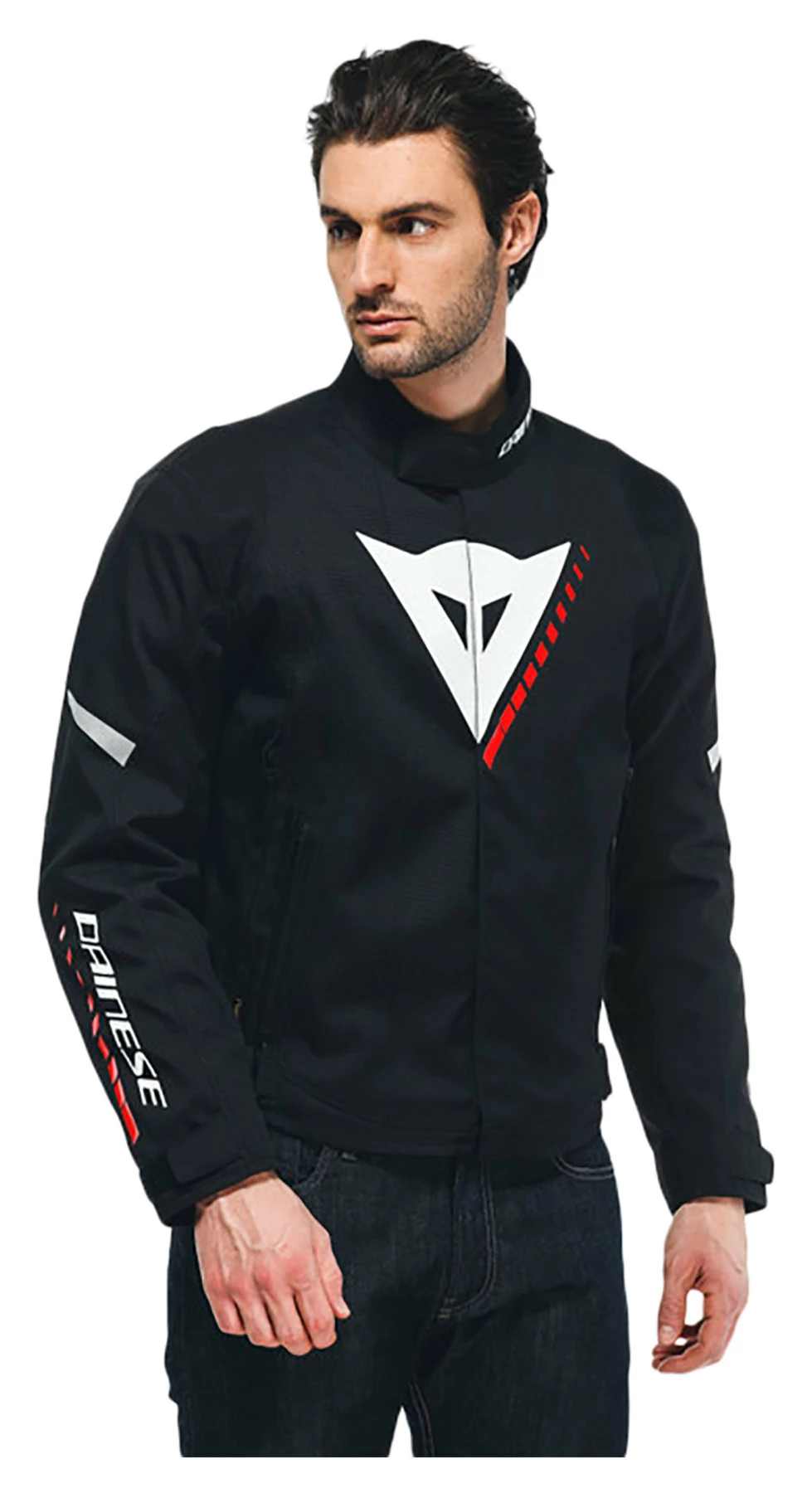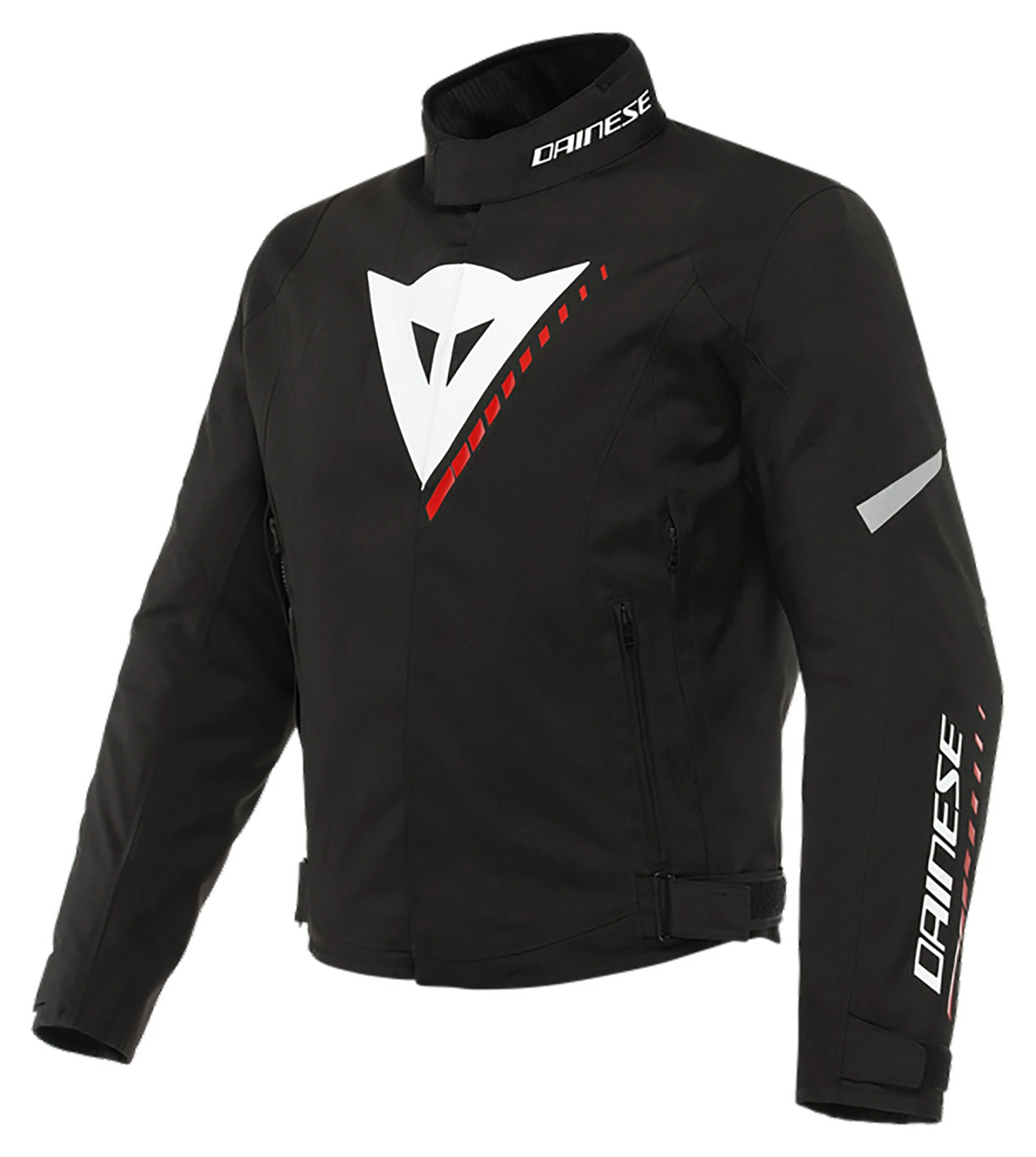 The men’s Veloce D-Dry® motorcycle jacket is perfect in all conditions, from spring temperatures, to changeable autumn weather and even the cold of winter. Versatile and lightweight, it is designed to suit women riders’ needs and boasts an iconic Dainese design. The fixed D-Dry® waterproof membrane provides peace of mind when riding in the rain or bad weather. The removable thermal lining offers total versatility, for a jacket that is perfectly comfortable even on the coldest days. When riding in warm conditions, ventilation can be adjusted via the lateral air vents to ensure optimum comfort. Composite protectors on the shoulders and elbows uphold Dainese safety standards and can be supplemented with a G1 or G2 back protector, easily inserted into the dedicated pocket. The jacket is also equipped with a zipper safety system for attachment to Dainese motorcycle pants. Reflective details ensure perfect visibility on the road. It also offers ample storage space with two external side pockets with zipper, a zippered pocket on the chest, and two inside pockets.