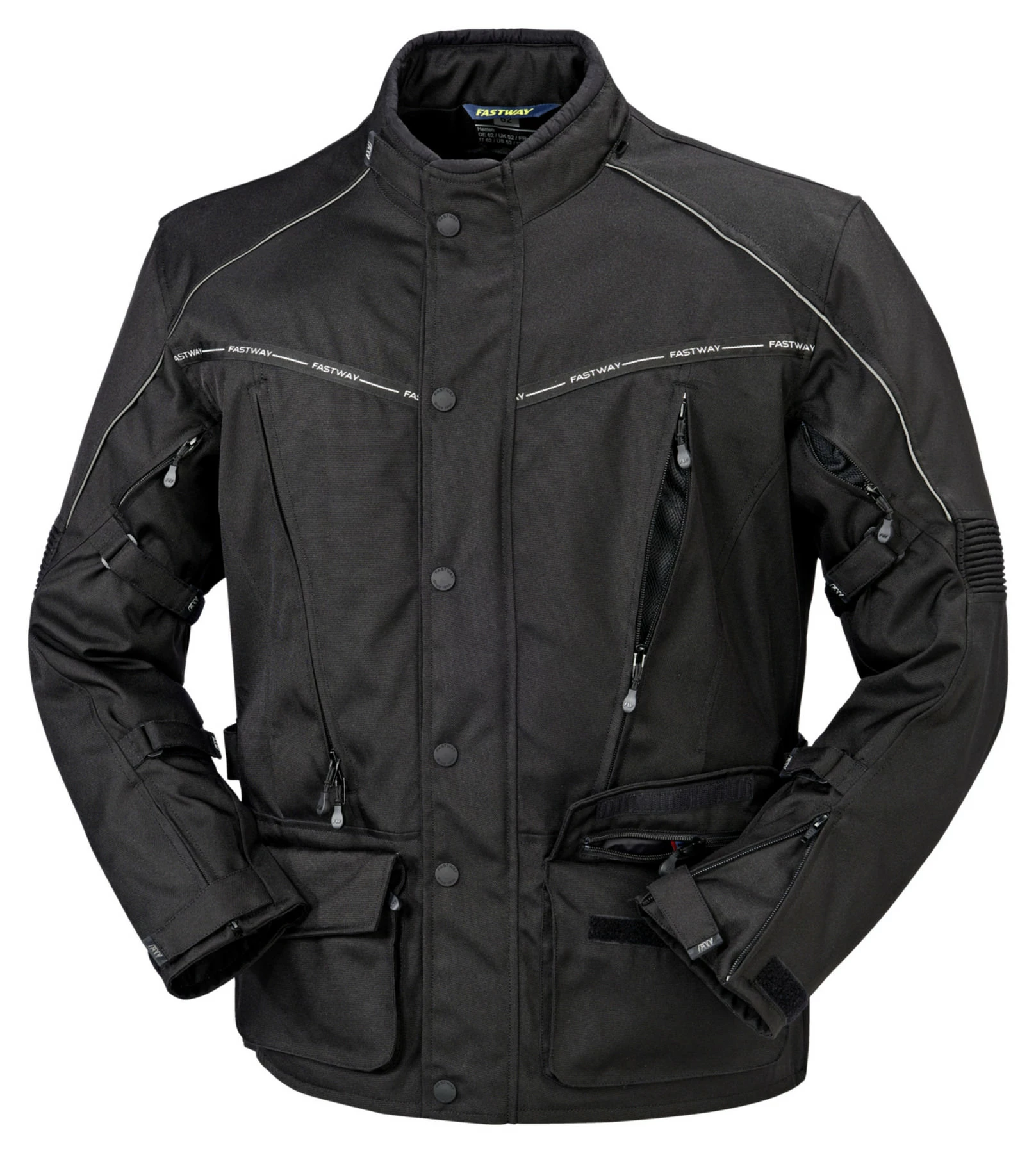Ever better touring motorcycles, ever more beautiful touring routes and ever more attractive touring clothing – it’s incredible what’s out there nowadays when it comes to discovering the world. And it doesn’t have to cost the earth! A good example is the Fastway *Touring Men 201* Textile Jacket. Especially for large sizes, with multiple adjustment options. Equipped with a climate membrane, air vents, a good number of pockets and highly abrasion-resistant 600D COSATEC fabric. Try it on, feel great, ride off. The world awaits you!