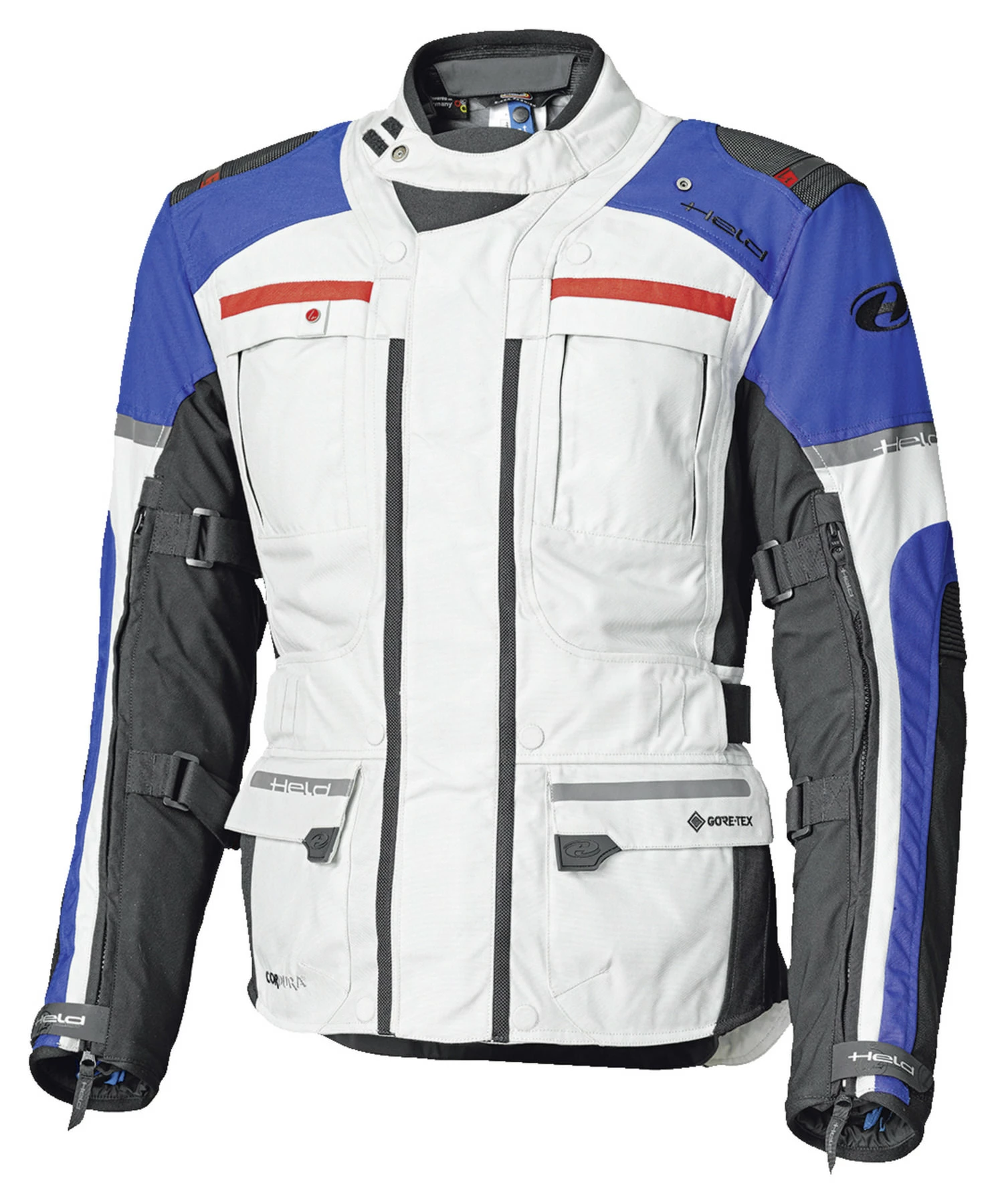 A speciality among touring jackets is the Held *Carese Evo 62140*. This textile jacket offers you all kinds of comfort on the road, whether the sun is shining or it’s pouring down. Many details ensure that you feel comfortable even after hours in the “saddle”. Starting with the abrasion-resistant 500D Cordura, the removable GORE-TEX 3-layer climate membrane, the integrated hood that can also be worn under the helmet and thus protects you from water penetration in the rain, and the excellent fit. One of the most interesting things for us, however, is that the *Carese Evo 62140* motorbike jacket has been equipped with a 37.5 inner lining. This material keeps the so-called microclimate, which exists between the body and the fabric, at the ideal body temperature and absorbs moisture optimally. In this way, a better and long-lasting feeling of well-being is achieved, which is guaranteed to increase your performance on the bike during long rides. Really strong.