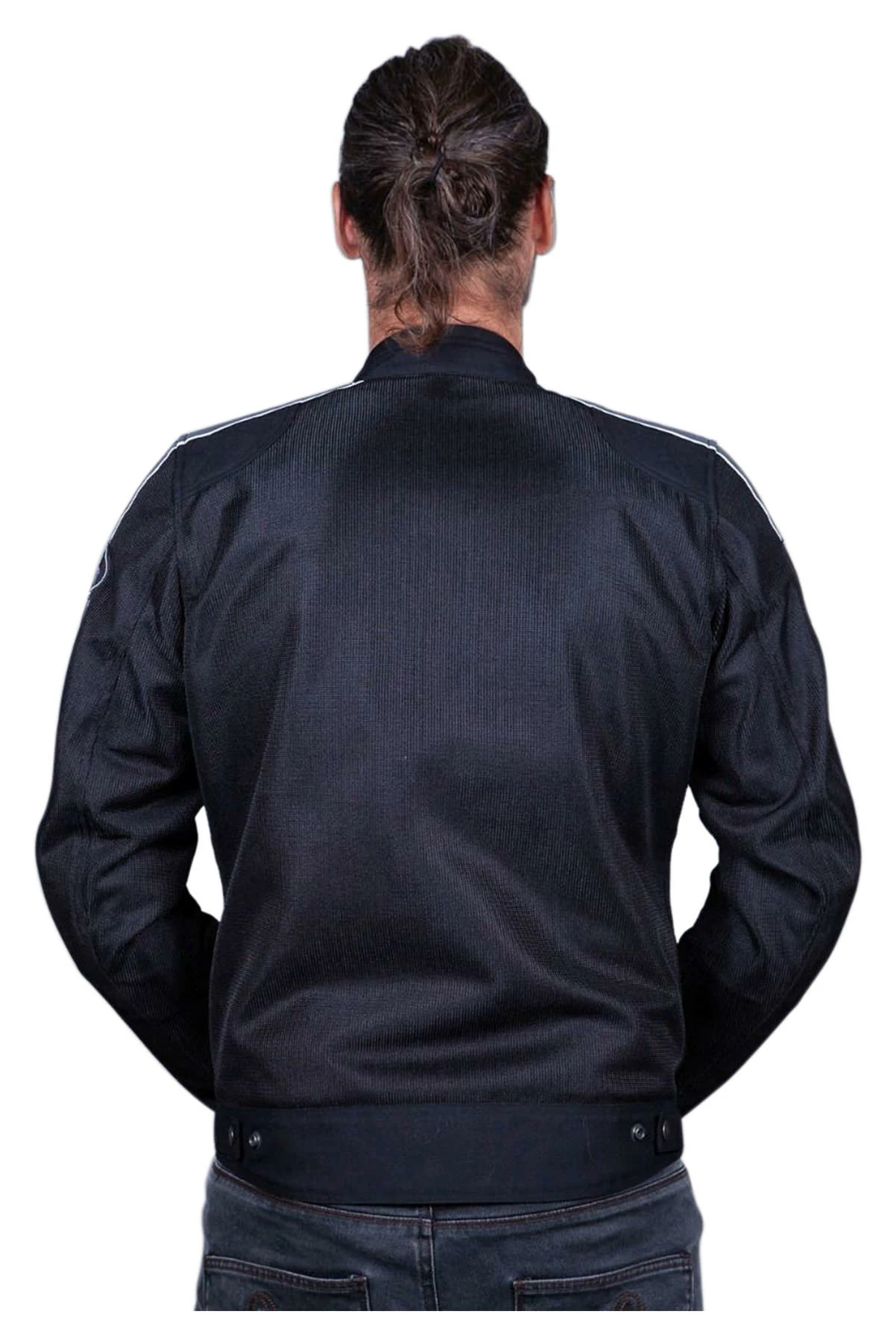- Air permeable through mesh fabric front, sleeves and back