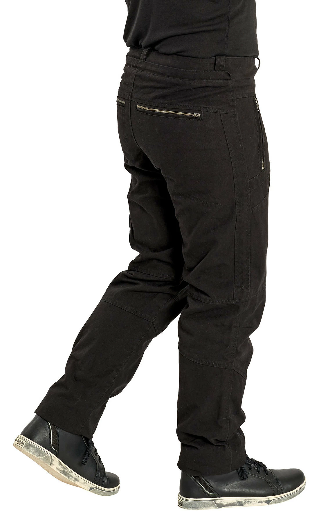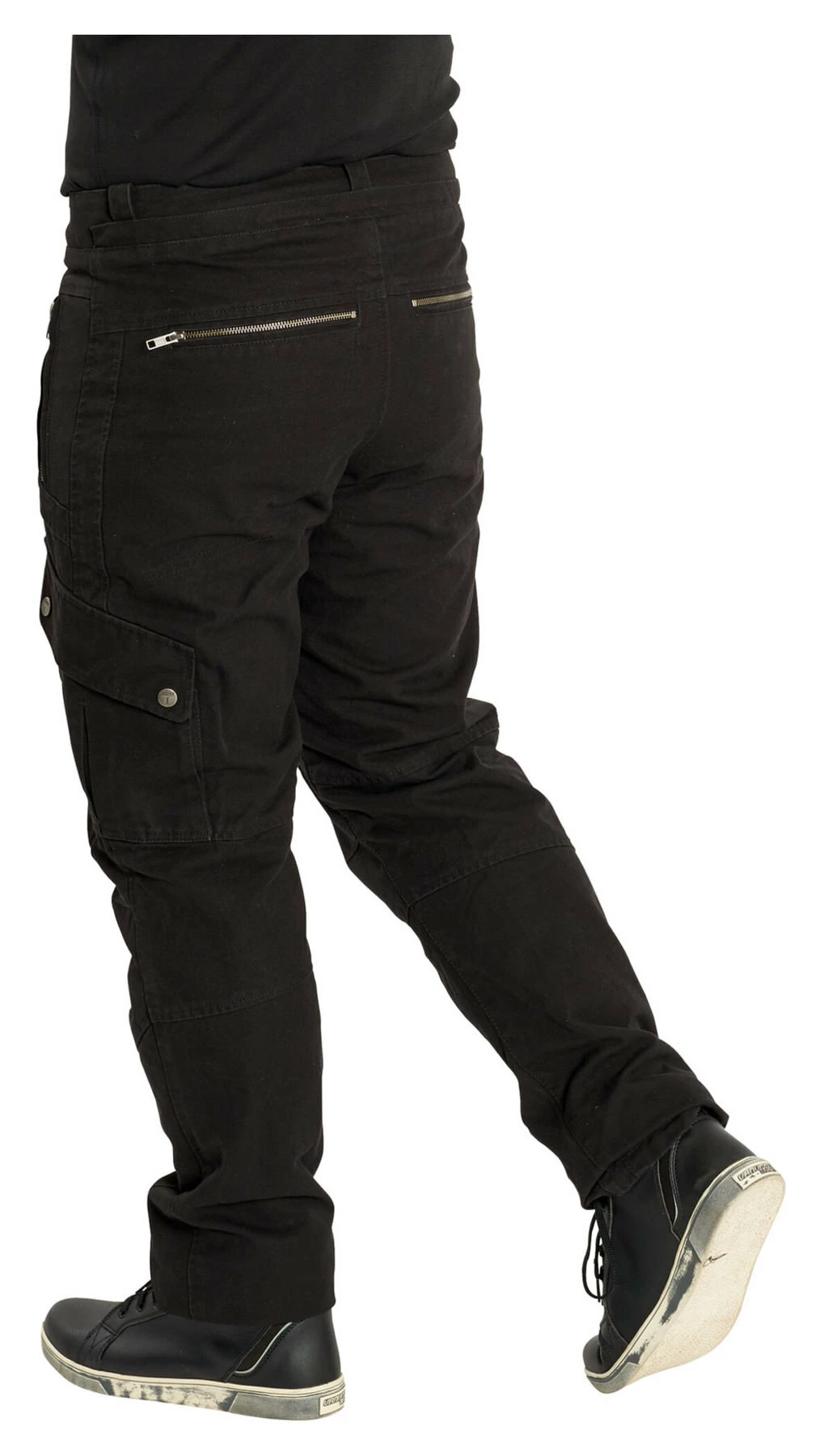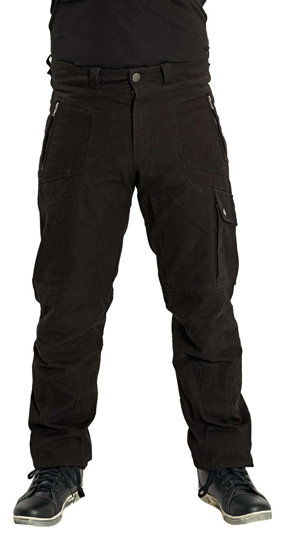 Highway 1 Cargo Trousers, made of sturdy canvas fabric, combine super comfort with the fashionable urban look. The casual cut and large leg pocket plus high-quality cotton give these trousers the characteristic cargo look, while Kevlar reinforcements makes them ideal for motorbike wear. Available in plain black, which simply never goes out of fashion.