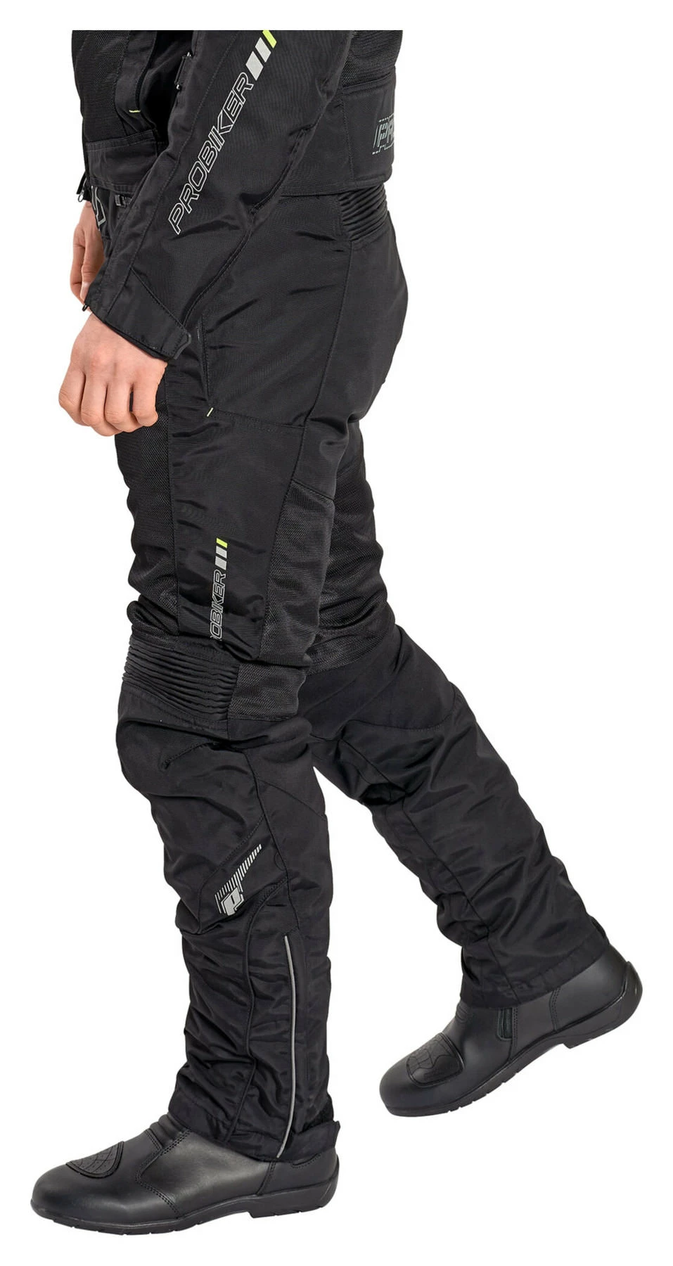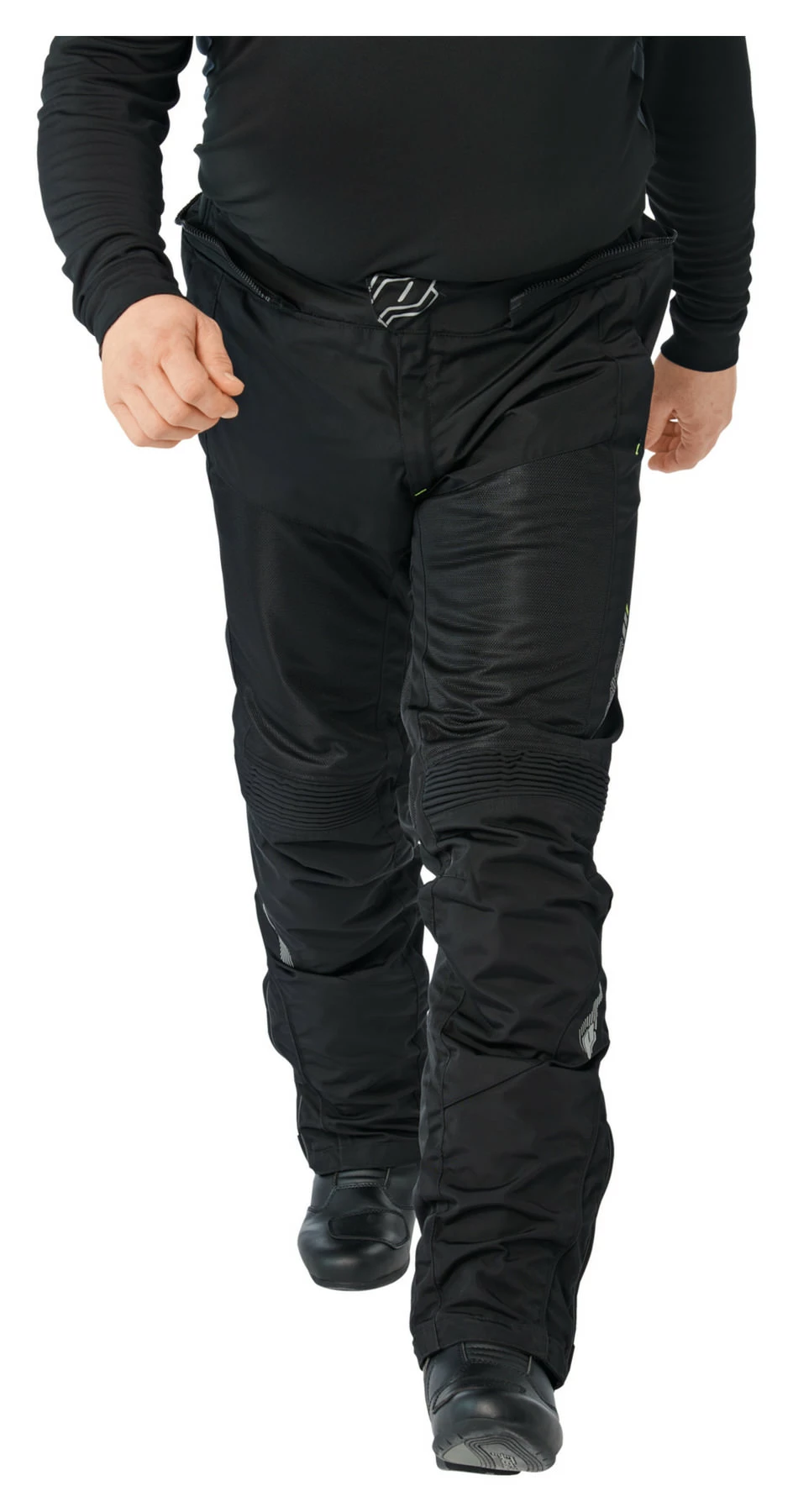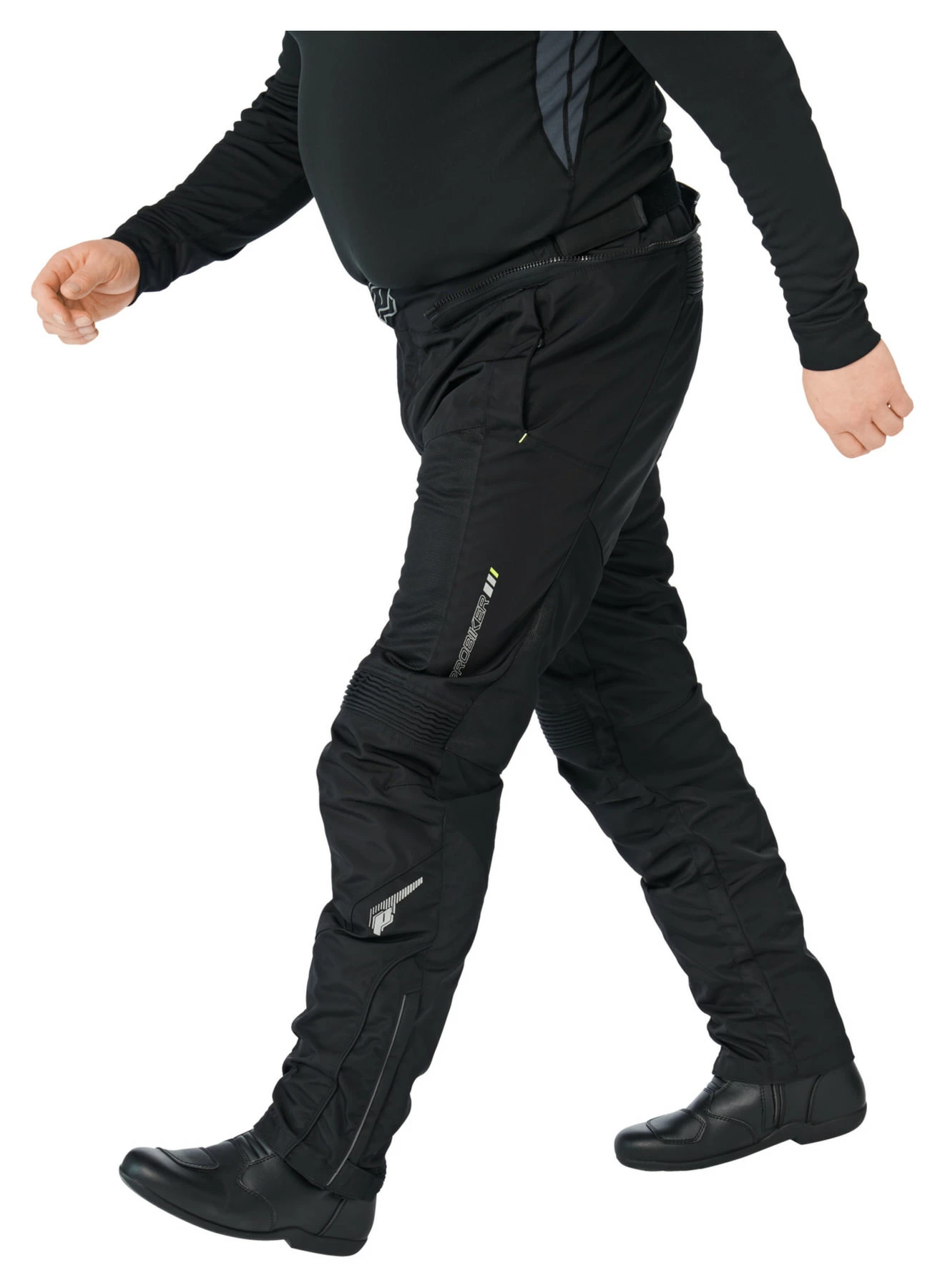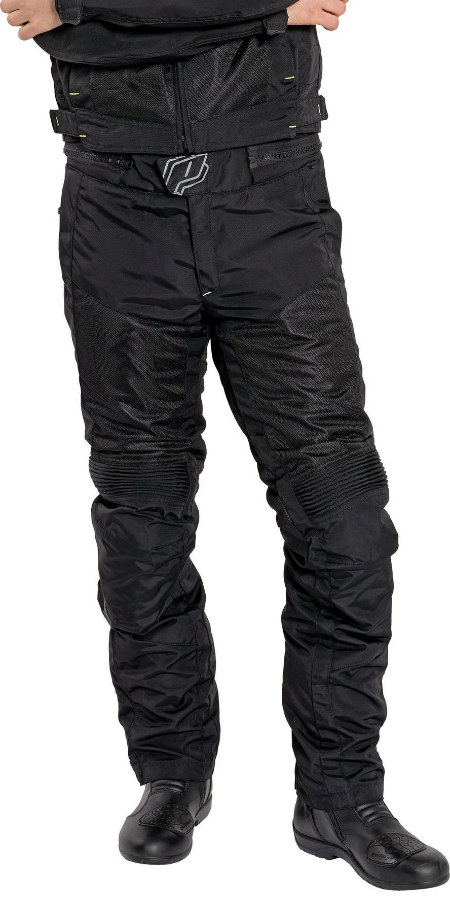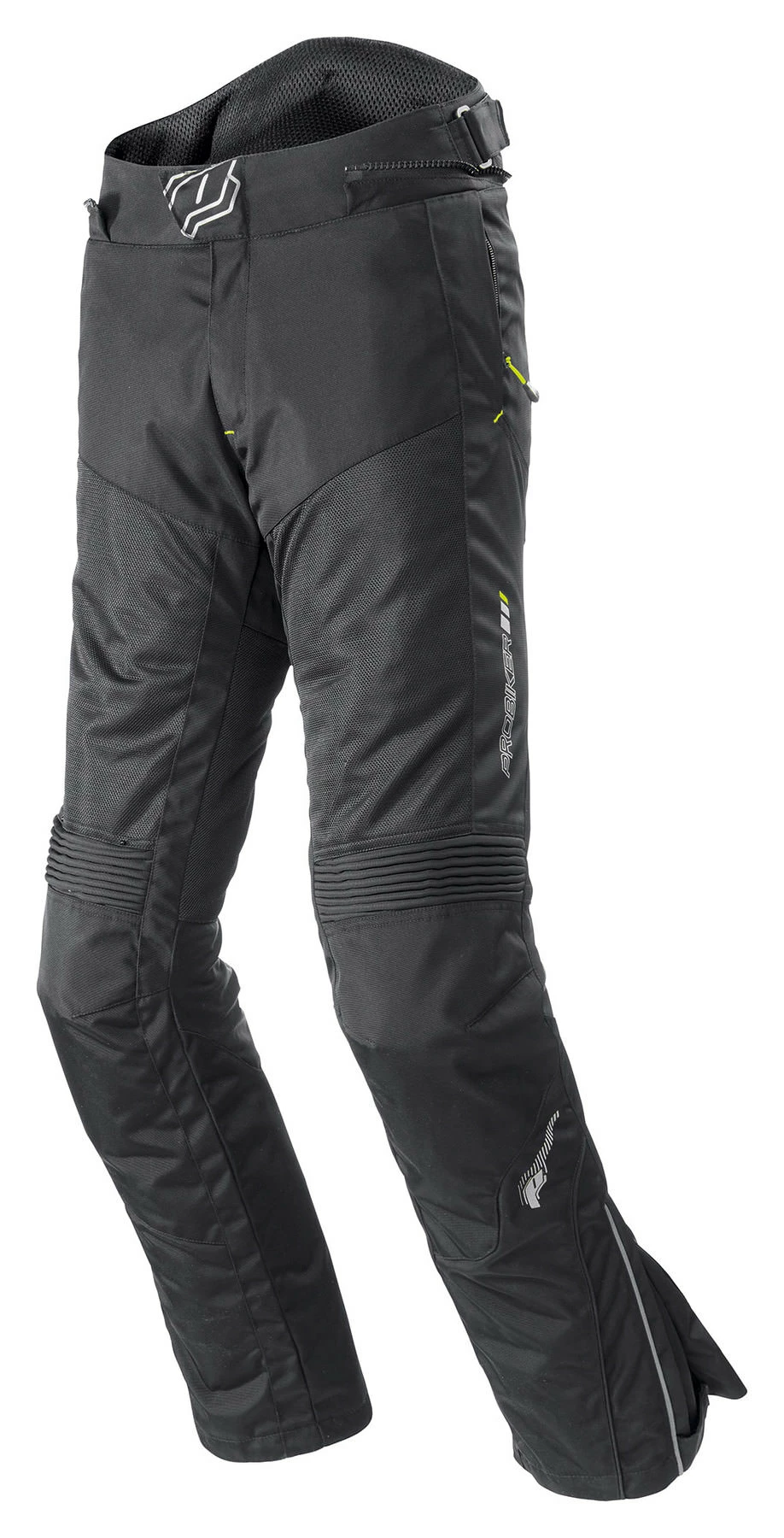 These are the whatever-the-weather summer trousers. Sporty and airy/summery with large mesh panels and membrane lining. Ideal for all weather. And together with the matching jacket, they are sure to become your new favourite two-piece motorcycle suit!