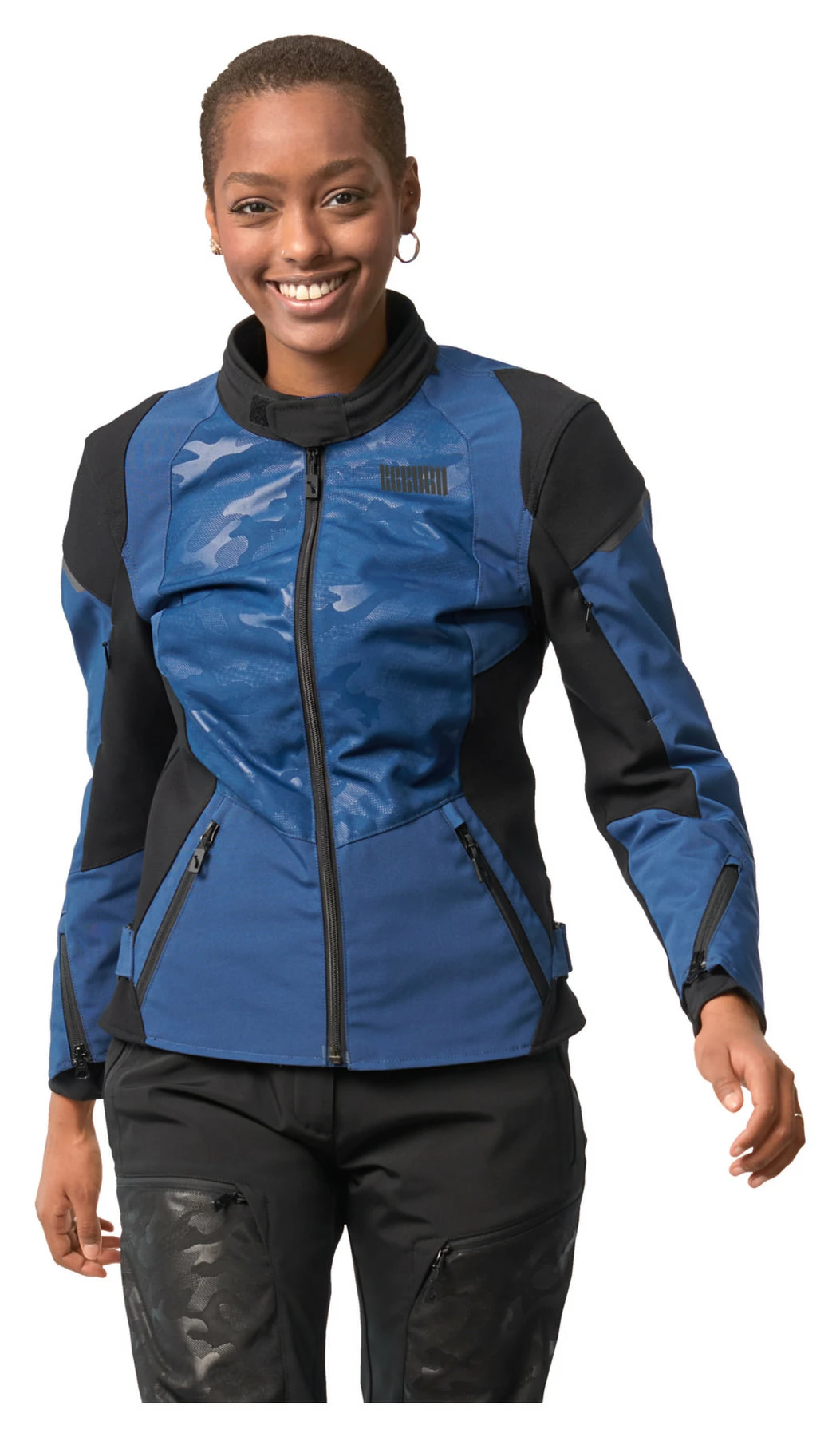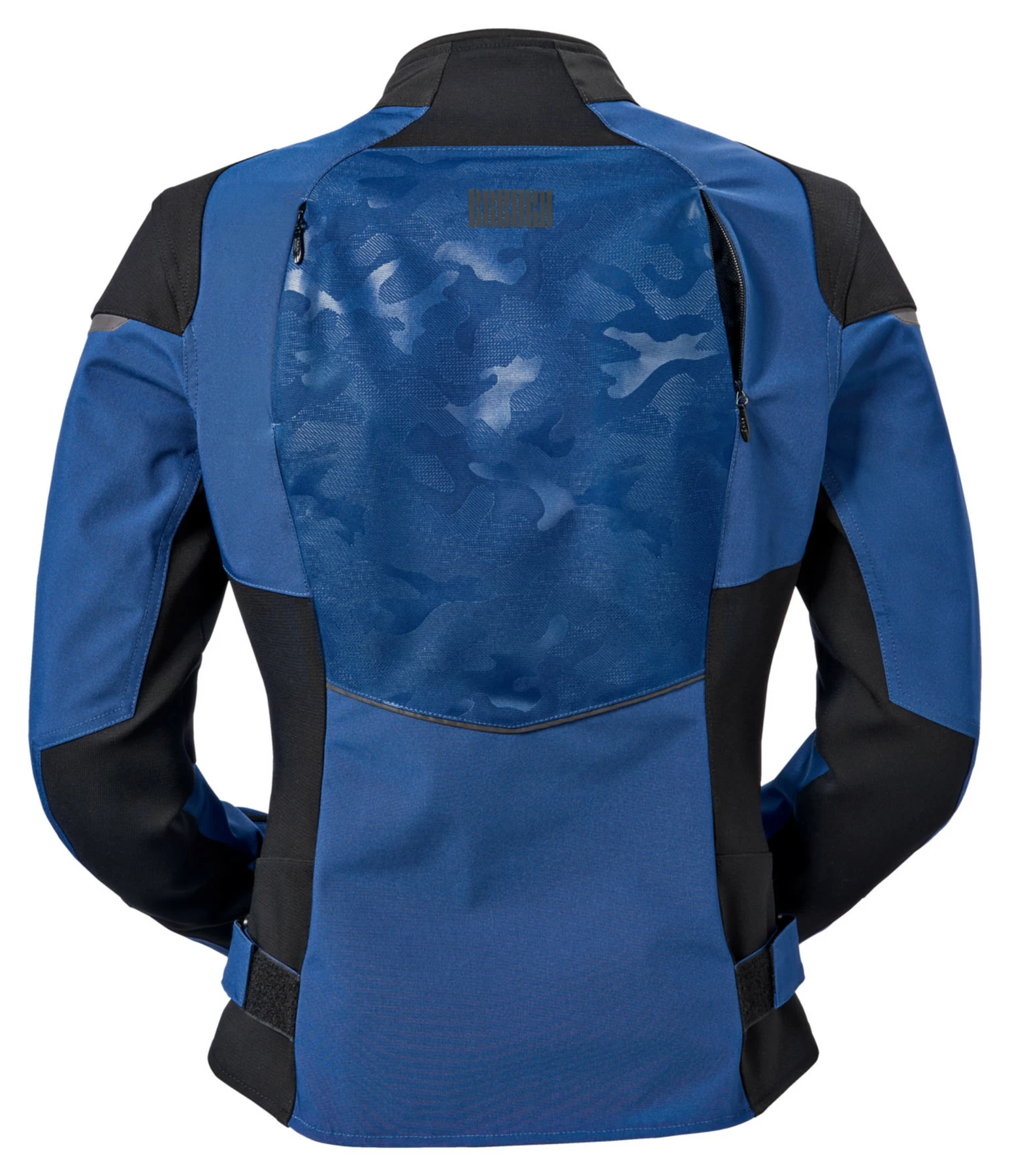 Enjoy your “blue hour” the way you want! On your motorbike, when you’re taking bends and best of all in the blue Rekurv *E-21.02* women’s textile motorbike jacket. A really nice piece. Sporty and figure-hugging cut. The special blue laser print camouflage design works very well. In addition, the Rekurv *E-21.02* is equipped with a Z-Liner membrane and is therefore breathable, windproof and waterproof. Totally your thing!