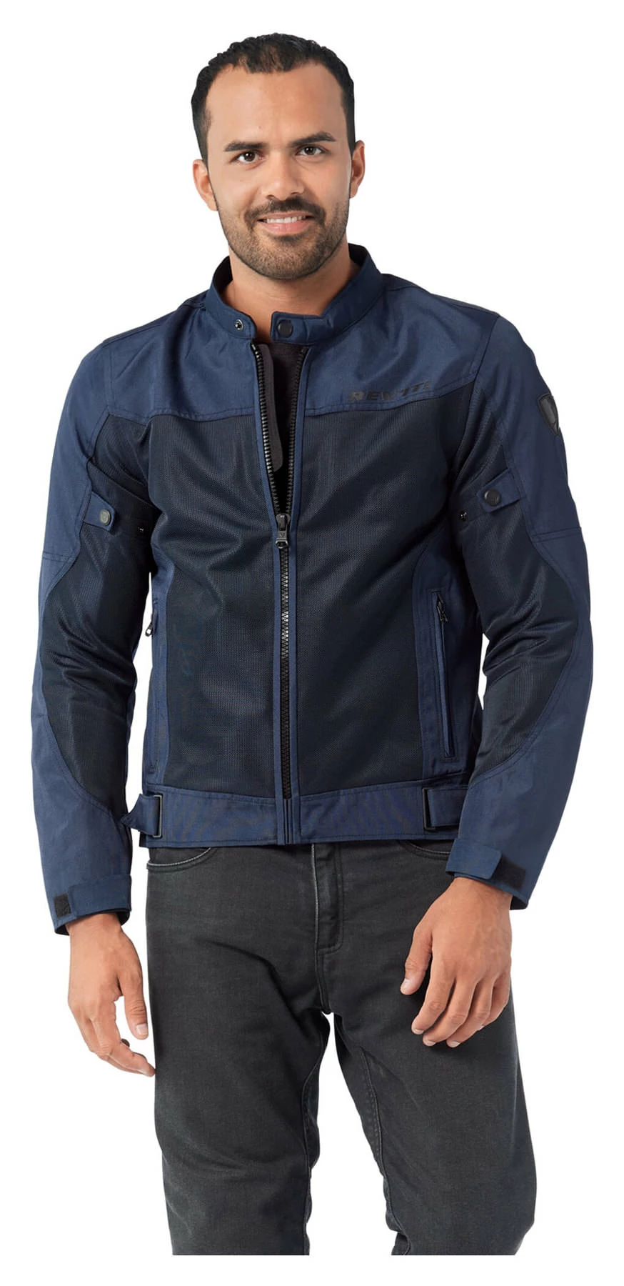 Light, airier, REV’IT! *Eclipse* – the summer motorcycle textile jacket with large mesh panels at the front, on the sleeves and rear. So breathable you hardly notice it when riding. It’s just like riding in a T-shirt, but still with the protection offered by protectors and abrasion-resistant 600D fabric. Cool!