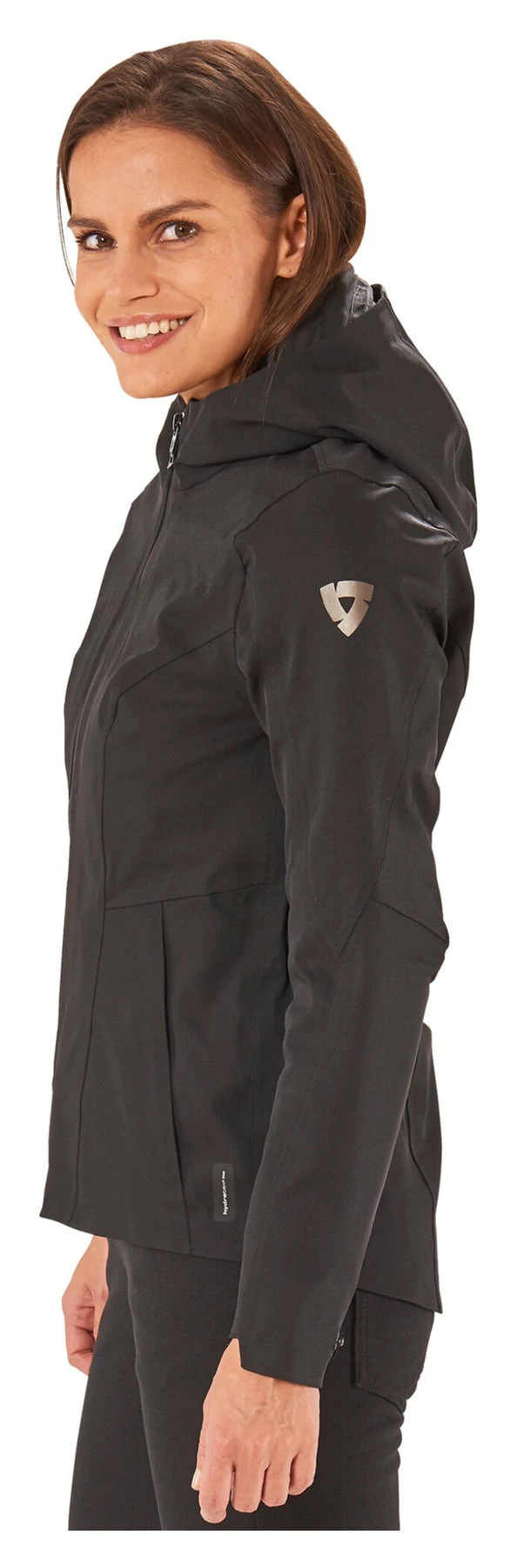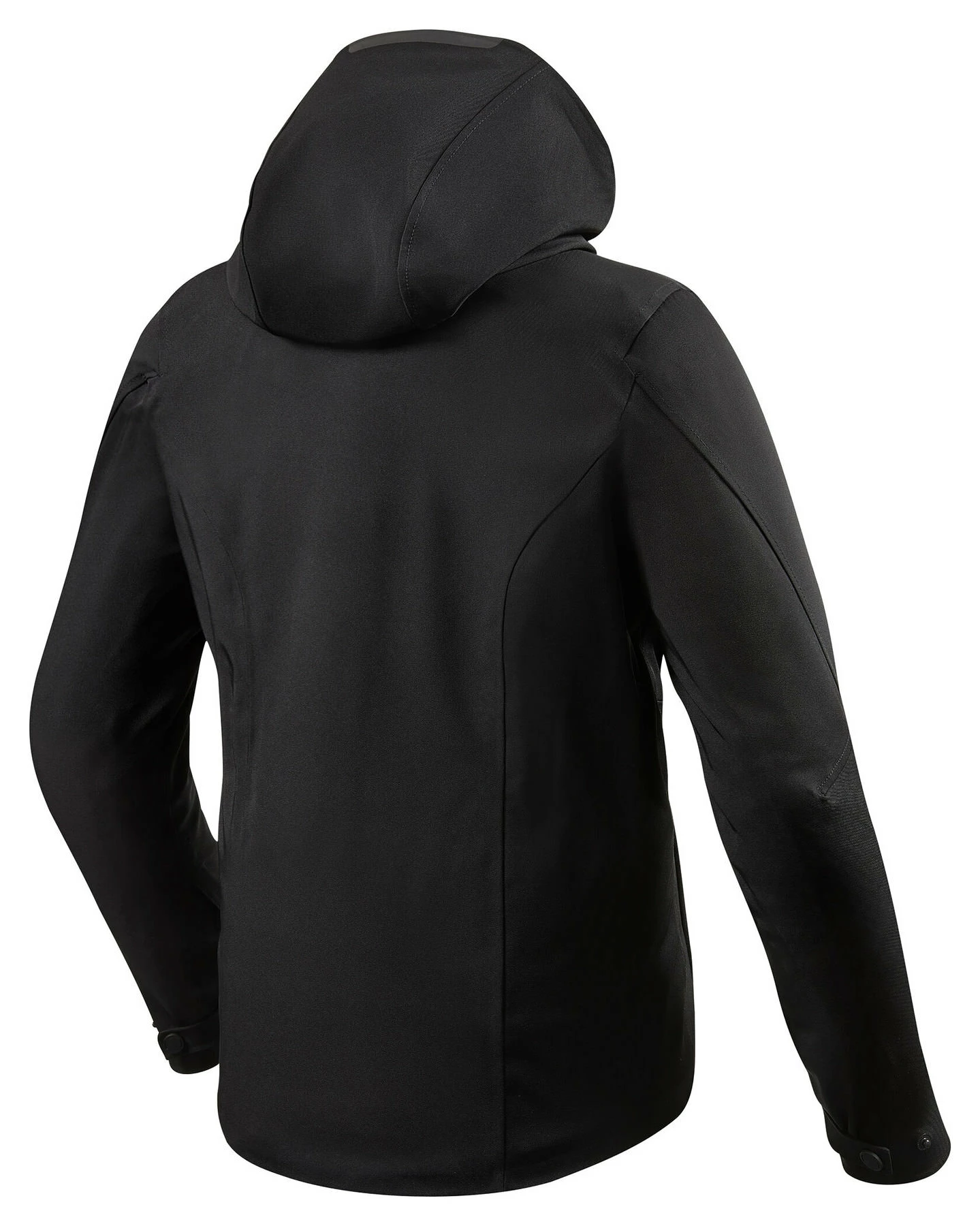 For the fast ride into the city – rain or storm, whatever the weather. With the REV’IT! *Bellafonte* ladies’ softshell jacket, you are snugly wrapped up and well protected. The integrated climate membrane and removable thermal liner takes care of this. The various elbow, shoulder and optional back protectors make the *Bellafonte* a serious motorbike jacket. Looks great with biker jeans!