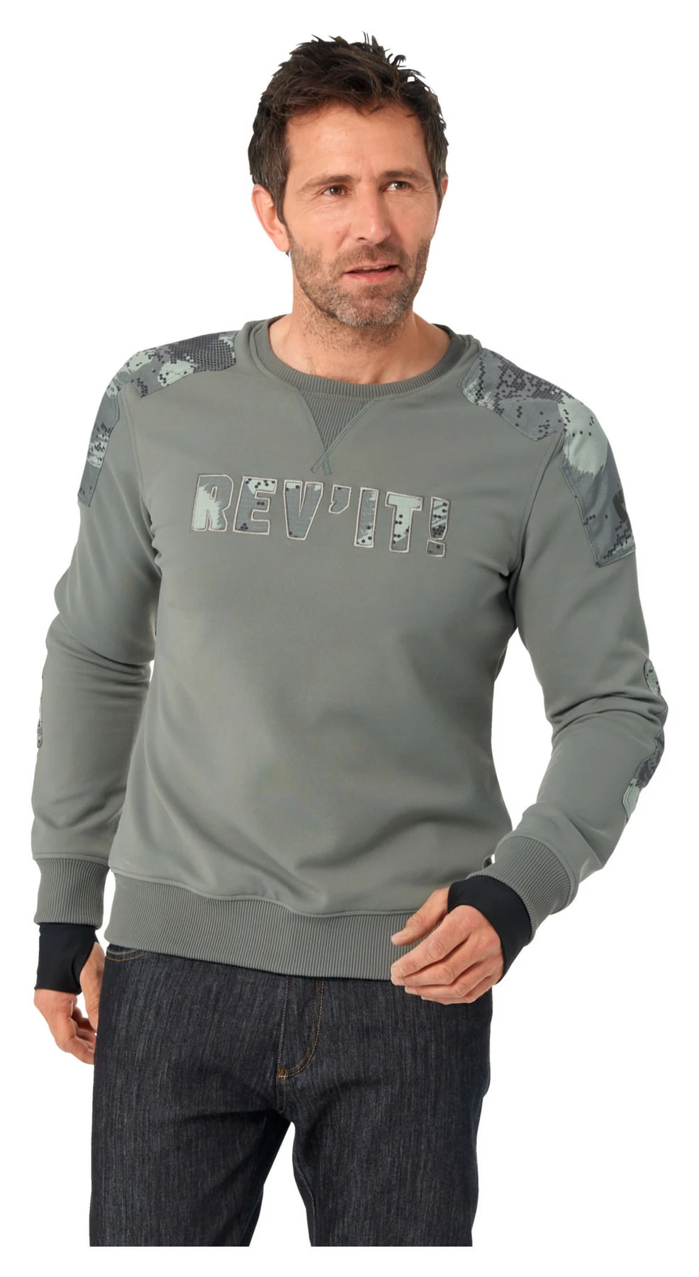 Motorcycle jackets that can also be sweaters are not something you find often. But REV’IT! has developed a very attractive one. Louis presents: the REV’IT! *Whitby Sweater*. This sweatshirt is a single-layer garment, which makes it amazingly comfortable. The design with just a single outer shell layer plus reinforcements makes the *Whitby Sweater* perfect for the summer. Bandit certainly feels just like a “normal” sweatshirt.
