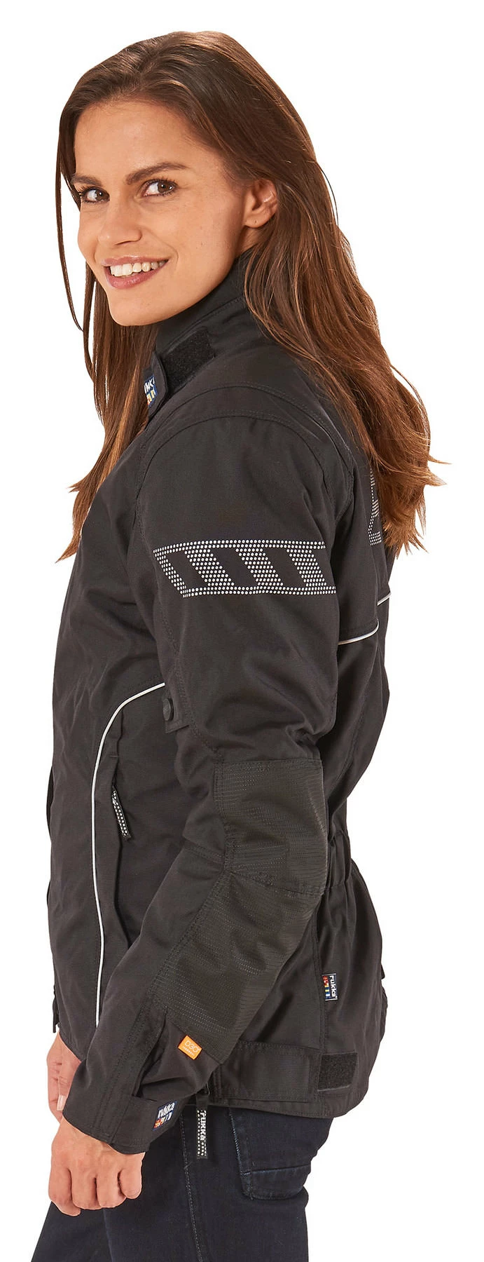 On a motorcycle tour, equipment parts need to practical, light and uncomplicated. Rukka had exactly these requirements in mind when it developed the *Hermia* textile jacket. The result is a motorcycle touring jacket with feminine cut and Gore-Tex Z-Liner membrane which you can wear all year round. Enjoy!