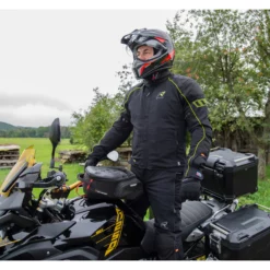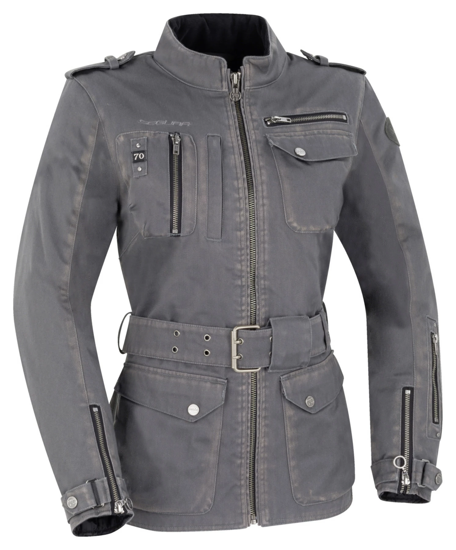 - With a very slight uniform touch thanks to unobtrusive epaulettes, the Segura *Lady Woodstock* women’s motorbike jacket is reminiscent of the good old days. Back then, when nothing worked without Kickstarter, no one argued about petrol prices and consumption and the heroes’ hair was long. Many people associate the name Woodstock with a Love & Peace open air festival that wrote music history. The Segura *Lady Woodstock* is a long-cut textile jacket made of special Serica fabric. It is equipped with a climate membrane so that wind and weather cannot harm you. The many pockets hold practically everything you absolutely need to carry with you.
