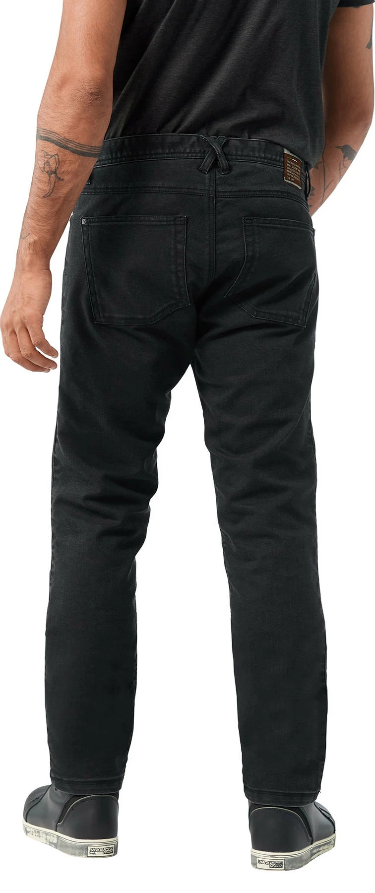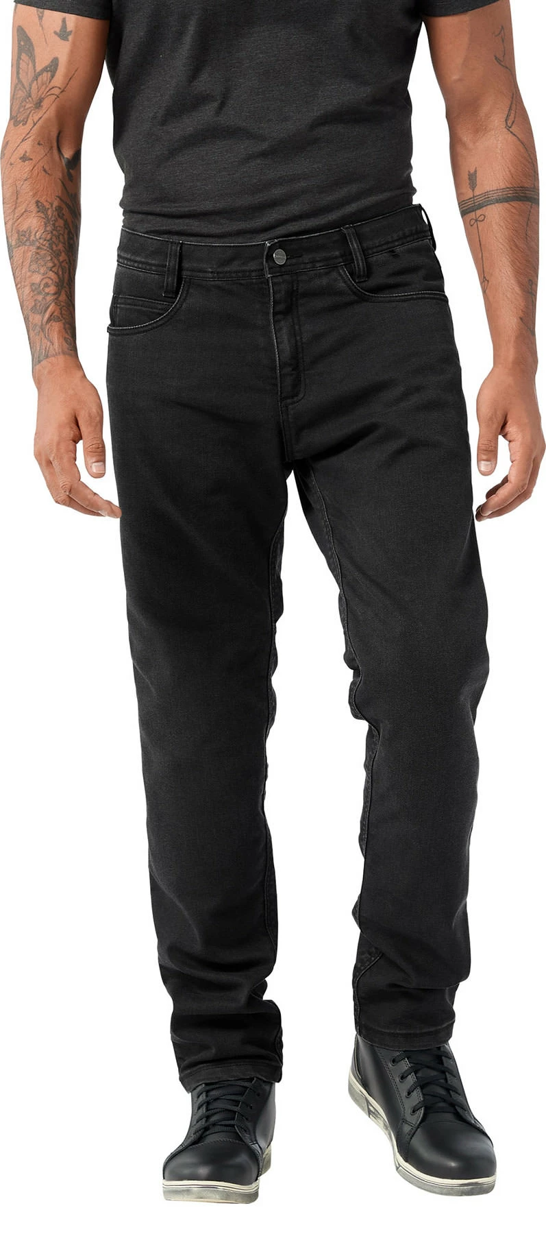 Vanucci really knows how to make great motorcycle jeans. The *Cordura 2* managed to give that amazing feeling of freedom, adventure and biking fun, and now Vanucci *Cordura 2* slim-fit men’s jeans go one step further. Absolutely stylish, cool jeans, with a body-hugging and medium-waist cut, in black with an understated wash.