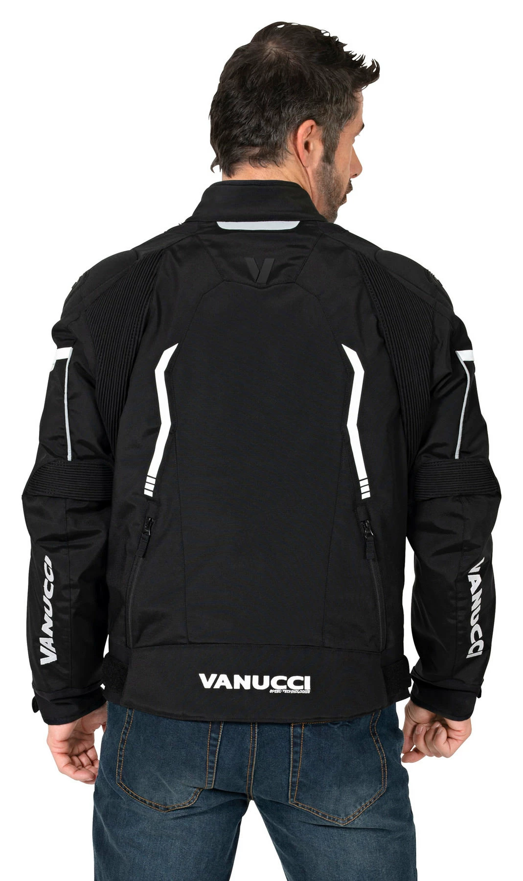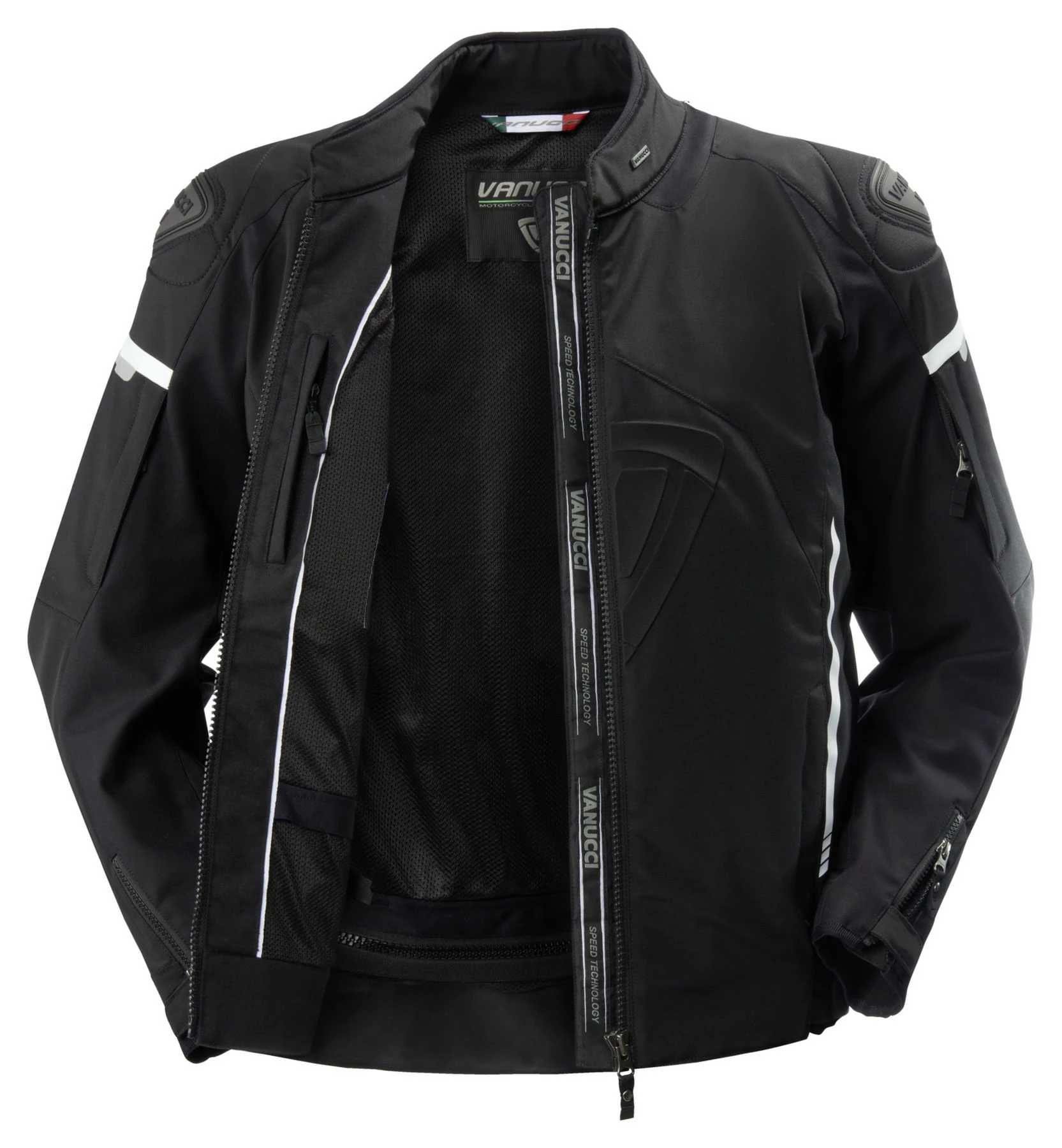 But is it art? Absolutely, it’s the Vanucci *T-ART*. To be more precise: it’s the textile version of the Vanucci *ART XVIII* Leather Biker Jacket. Perfect for seriously sporty motorbike riders and as comfortable as it is light. Just perfect for summer. The laminated 500D outer shell is windproof and water-repellent. So a summer shower is no problem for the Vanucci *T-ART*. By the way, this jacket is also great for leisure wear.