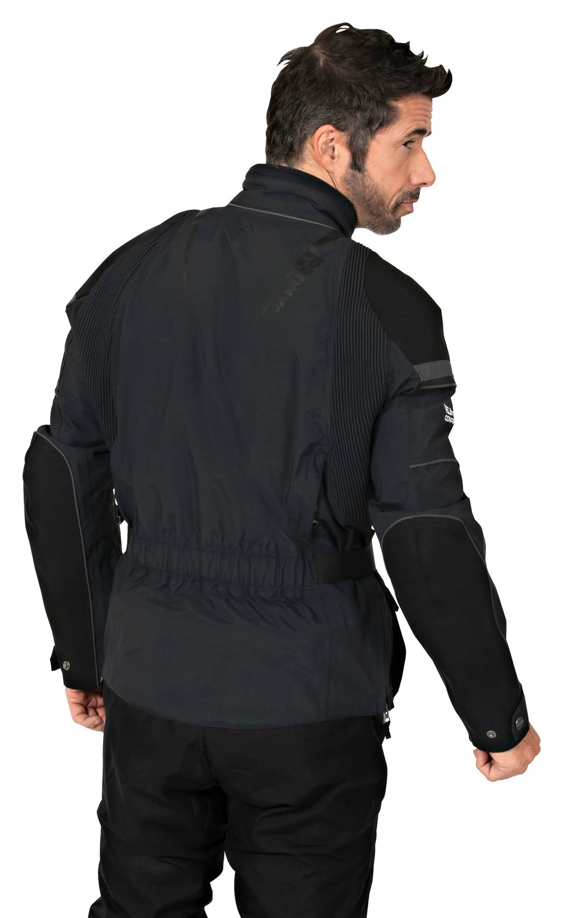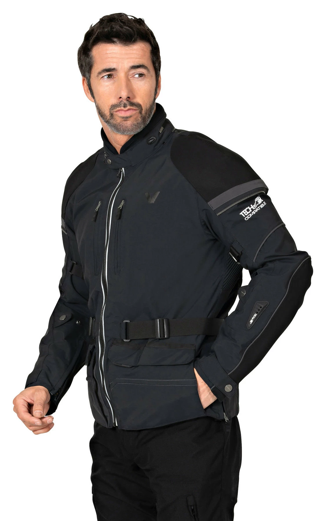 Off-road and touring textile jackets from Vanucci are always rather special. The Vanucci *VAJ-2 Tech Air*, for example. The appearance of this motorcycle jacket is classic Vanucci – sturdy, stylish and good. This is how a touring jacket should be: with laminated SympaTex climate membrane, longer cut, large pockets, adjustable sleeves, waist and hem, air vents. Stretch fabric and Power Stretch panels offer superb comfort.