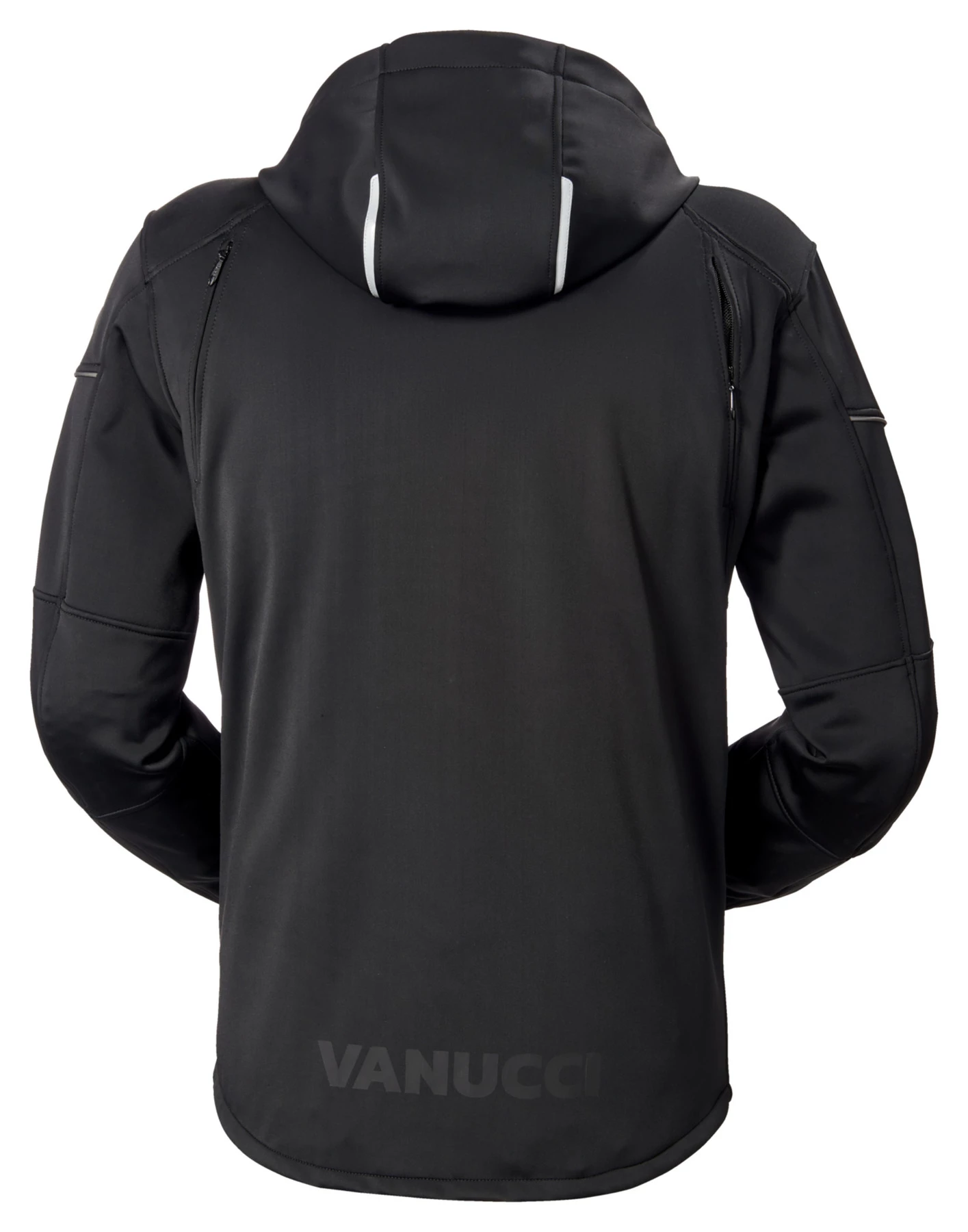 Softshell motorcycle jacket, anorak, hoodie – what has Vanucci conjured up for us? The fantastic Vanucci *VUJ-1* motorcycle jacket for those who have special requirements for their biker jacket and like to go new ways. This softshell jacket is elastic, comfortable, breathable, wind and water resistant. In addition, the fashionable figure-hugging cut, the lightness and the removable hood pleases. A great concept that you will enjoy every day.